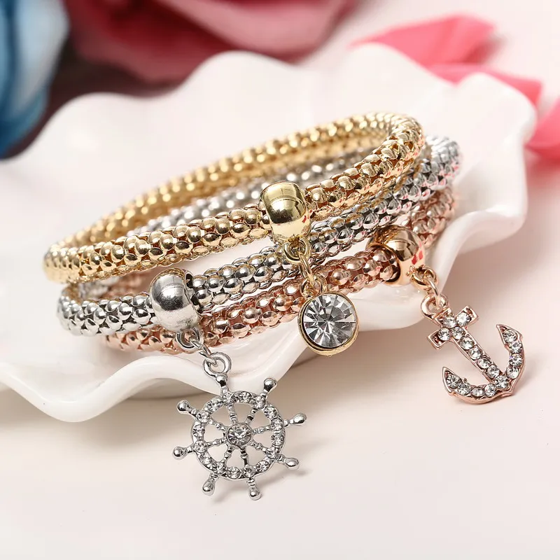 Main Features : 3PCS Girls Charm Bracelets Bangles Gold/Silver Plated Friendship Bracelets Bijioux Anchor Pendant Bracelet Pulseira Feminina