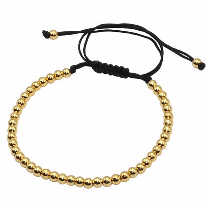 Main Features : Brading Macrame Men girl Bracelets Gold-Plated 4MM Round Beads Wrap Titanium Steel Bead Bracelets Women mens rope bracelet